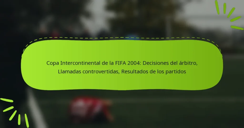 La Copa Intercontinental de la FIFA 2004 fue un evento crucial marcado por varias decisiones controvertidas de los árbitros que jugaron un papel fundamental en la determinación de los resultados de los partidos. Las decisiones clave, incluidas las de penalti y las de fuera de juego, encendieron debates entre jugadores, entrenadores y aficionados, influyendo en última instancia en las estrategias y la moral de los equipos en competiciones futuras. Key sections in the article: Toggle ¿Cuáles fueron las decisiones clave…