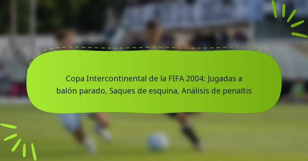 La Copa Intercontinental de la FIFA 2004 estuvo marcada por jugadas a balón parado decisivas que impactaron significativamente los resultados de los partidos. Los córners y los penaltis emergieron como elementos cruciales, reflejando tanto las estrategias tácticas de los equipos como la brillantez individual de jugadores destacados. Key sections in the article: Toggle ¿Cuáles fueron las jugadas a balón parado clave en la Copa Intercontinental de la FIFA 2004? Tipos de jugadas a balón parado ejecutadas Estrategias exitosas de jugadas…