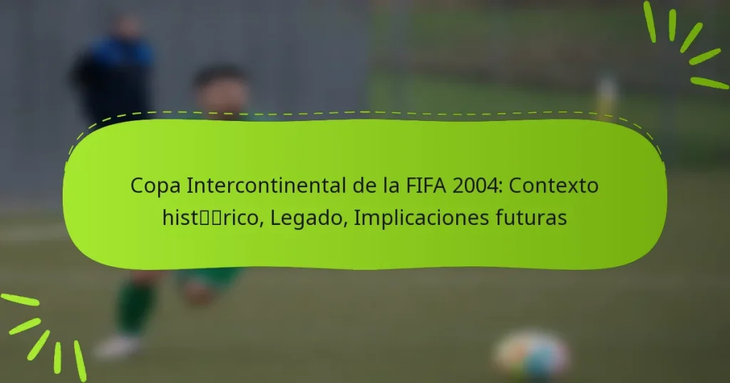 Copa Intercontinental de la FIFA 2004: Contexto histórico, Legado, Implicaciones futuras