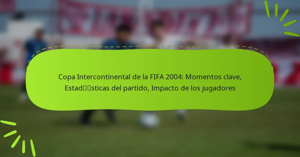 La Copa Intercontinental de la FIFA 2004 presentó un emocionante encuentro entre los campeones de Europa y Sudamérica, marcado por momentos clave que definieron el partido. Con goles decisivos, decisiones controvertidas y la apasionada participación de los aficionados, el juego destacó el espíritu competitivo de ambos equipos. Las actuaciones individuales de los jugadores jugaron un papel crucial, influyendo en el resultado y dejando un impacto duradero en el legado del torneo. Key sections in the article: Toggle ¿Cuáles fueron los…