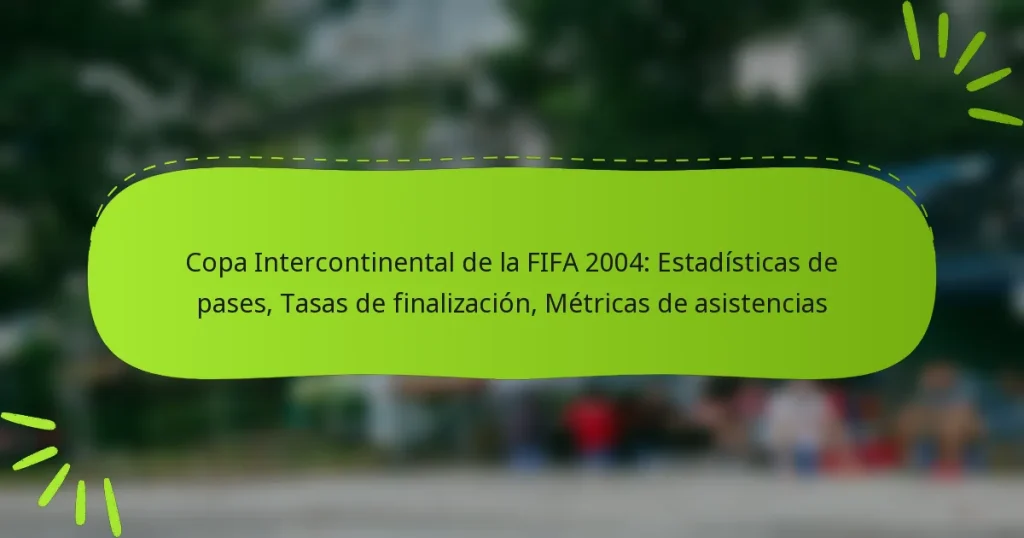 La Copa Intercontinental de la FIFA 2004 destacó estadísticas clave de pases que revelaron las dinámicas tácticas de los equipos competidores. Al examinar el total de pases, las tasas de finalización y las métricas de asistencias, obtenemos valiosos conocimientos sobre el rendimiento de cada equipo y su efectividad en la creación de oportunidades de gol durante el torneo. Key sections in the article: Toggle ¿Cuáles son las estadísticas de pases de la Copa Intercontinental de la FIFA 2004? Total de…