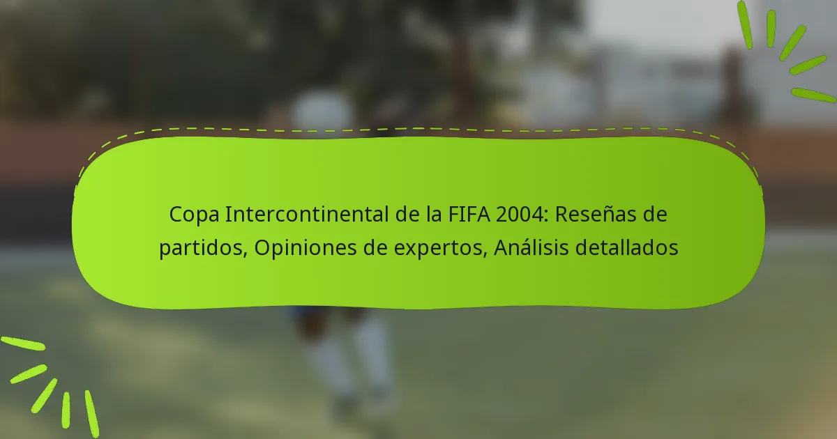 ¿Qué opiniones expertas surgieron de la Copa Intercontinental de la FIFA 2004?