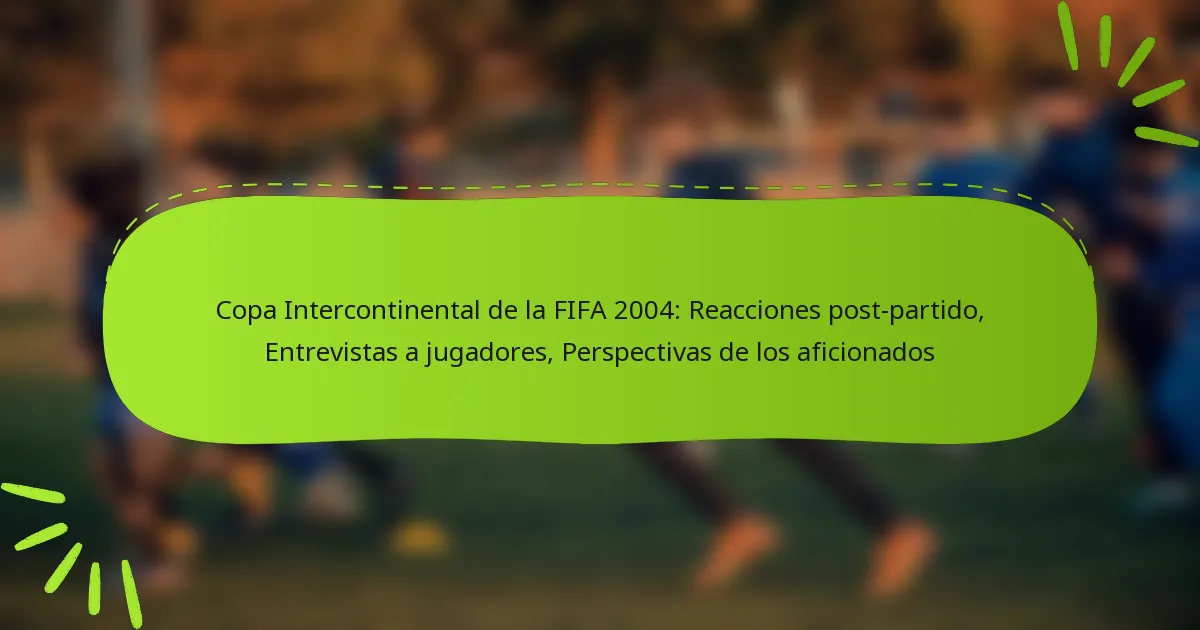 ¿Cuáles fueron las reacciones clave posteriores al partido de la Copa Intercontinental de la FIFA 2004?