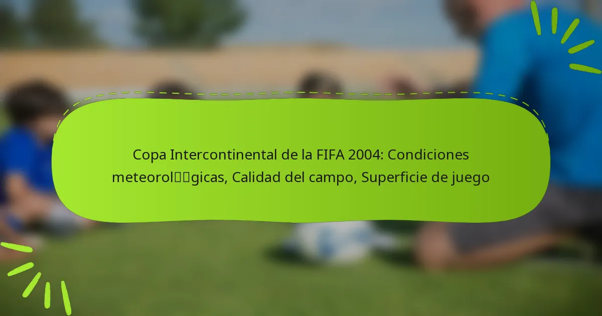 La Copa Intercontinental de la FIFA 2004 destacó el impacto significativo de las condiciones climáticas, la calidad del campo y la superficie de juego en el rendimiento del partido. Comprender estos factores puede ayudar a los equipos a prepararse mejor para futuras competiciones.